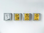 Feuerwehr &Brandmelder, each 13 x 13 x 4.5 cm, acrylic, enamel, paper on canvas, 2015