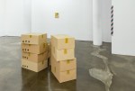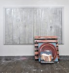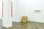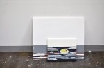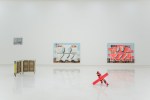Installation view Container, acrylic, enamel on canvas, 162 x 260 cm, 2016 I Wood, acrylic, enamel on canvas, 45.5 x 45.5 cm, 2016 I Bucket cover, acrylic, enamel on canvas, 73 x 73 cm, 2016 I Pallet, acrylic, enamel on canvas, 97 x 97 cm, 2016