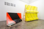 The View from the Road, Frankfurt am Main, acrylic, enamel on canvas, 2012, Red, Blue, Green and 30 Ibnstallation view 59x42cm, 110×39.5cm, 200x3cm, acrylic, paint on wood and canvas, plastic, 2012