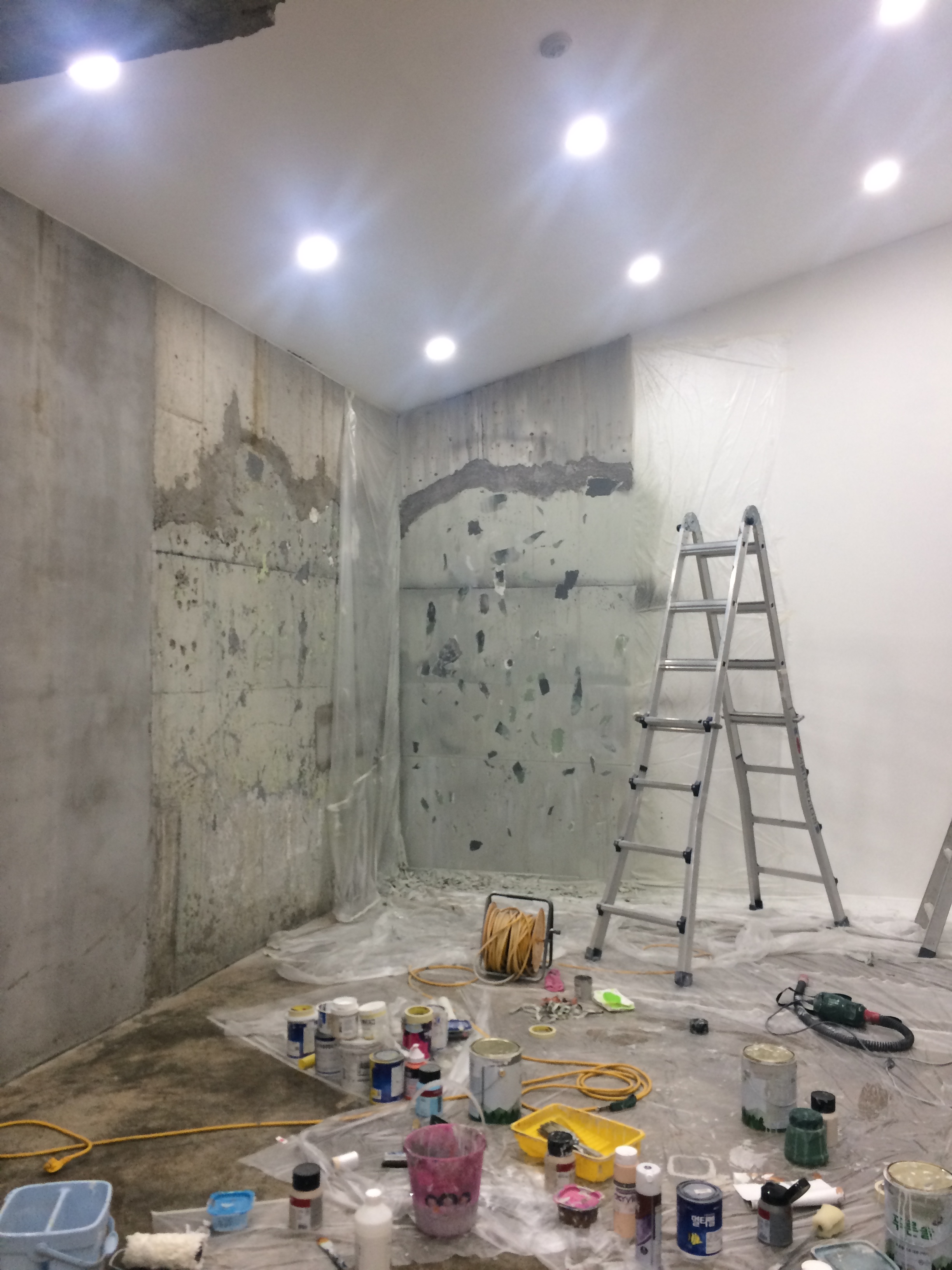 process – A Camouflage Wall, Acrylic, water-based paint on wall, 335 x 151.5 cm, 2019