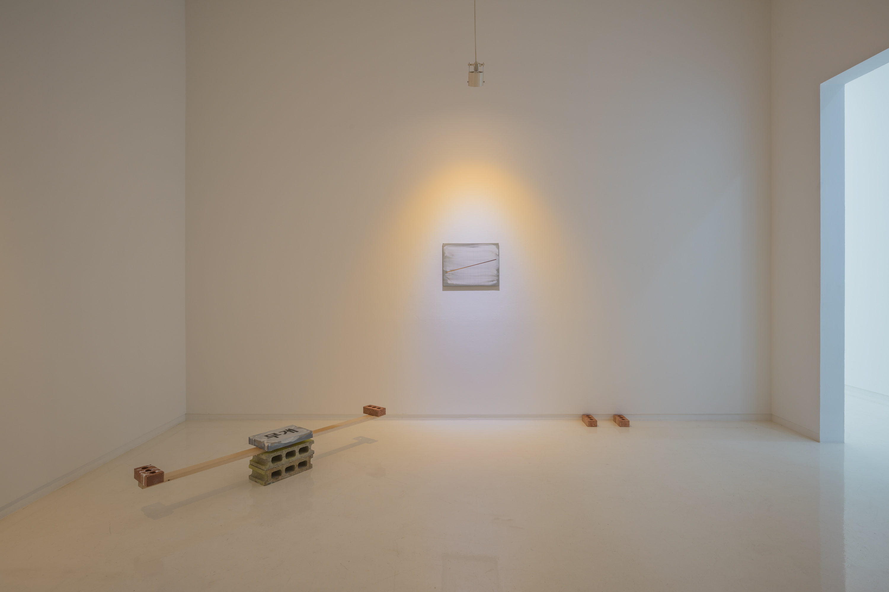 Weight I, acrylic, pencil on canvas, wood, blick, 40 x 190 x 24 cm, 2020, Weight IV, acrylic, pencil, colored pencil on canvas, 41 x 53 cm, 2020