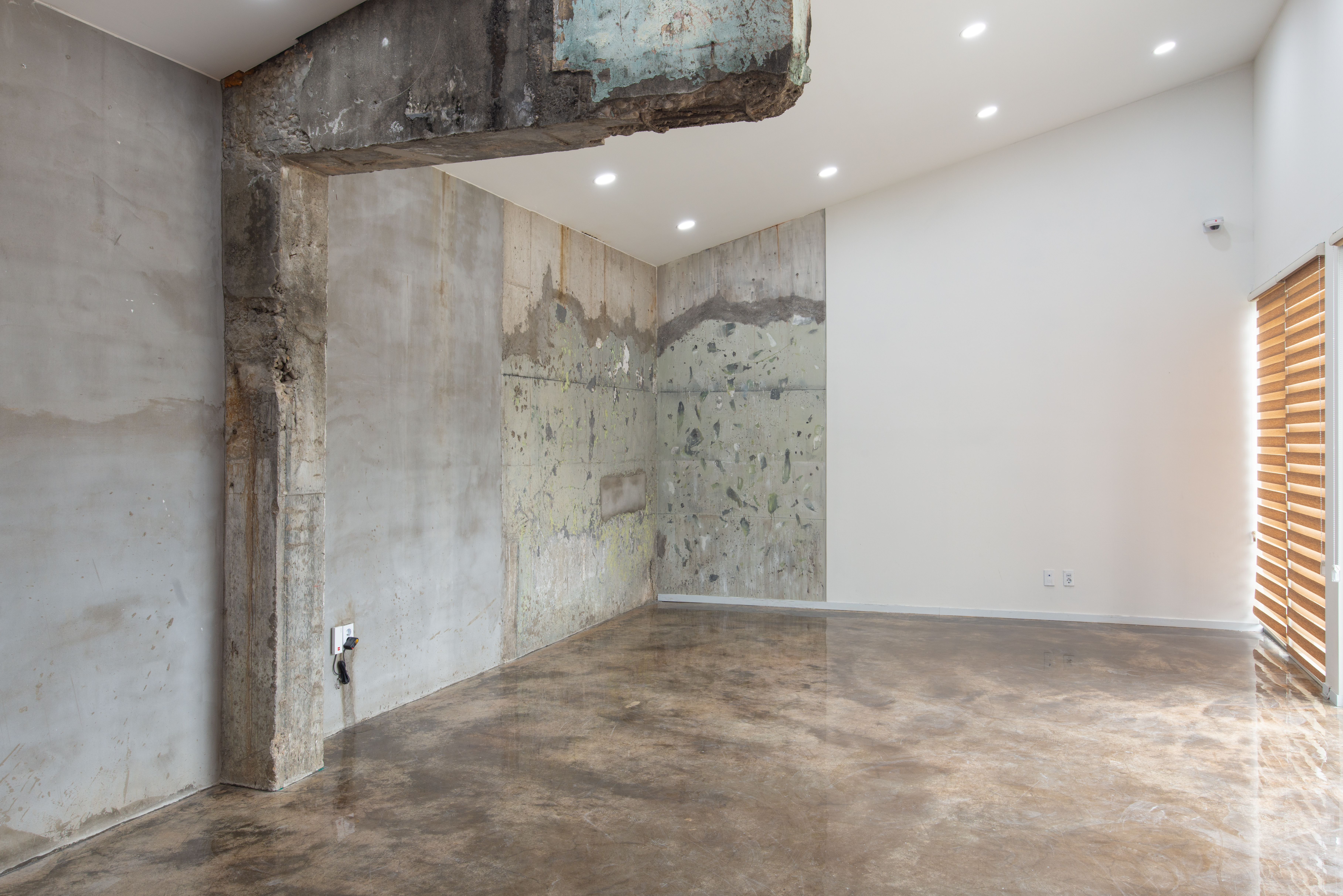 ‘Peace Culture Bunker’ is the name of the artist residency program. I stayed from September 2018 to June 2019. My studio was unit 6 where it was used as the antitank defense facilities in the past. They did not demolish part of the walls and left them to build into a unique structure with a wall made entirely of glass and two doors in front and back instead of the window. I sometimes slept at the studio since my house was far away and I could experience my private area changing into a public area in an instant because it was located near park where I could observe the visiting locals any time during the day whenever I opened the door. The noises and gazes passing between a wall made a sense of distance between me and them mas the time passed by and I lived with blinds closed and opened the door as little as possible every day. The residency that started with this pattern is now near end. The most work or the effort I have done in the past 10 months was to block the sights from outside the door and to not to communicate with residents who were curious about my studio, contrary from the residency’s original purpose. This exhibition’s work, 「A Camouflage Wall」(2019), is to reenact the parts of walls in the antitank defense facilities disappeared from unit 5 of Peace Culture Bunker due to remodeling in painting. Painting disguised as the wall will be the final output of last 10 months that I have been trying to hide and camouflage myself.